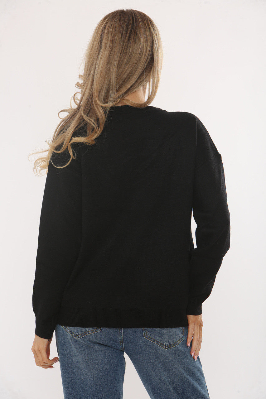This cute jumper features a round neckline and a delightful embellished bow, fitting sizes 8 to 16 with a playful touch.